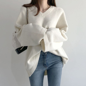 慵懒风V领针织打底衫女秋冬新款大码女装洋气减龄套头毛衣女上衣