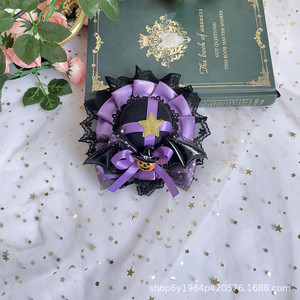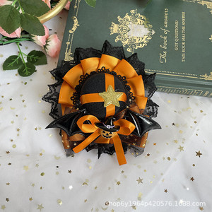 洛丽塔万圣节配饰南瓜色恶魔发夹lolita橙色黑紫蝙蝠蝴蝶结小礼帽