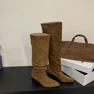 7312-1~粗跟法式过膝长靴女靴子2025年秋季新款高筒堆堆靴