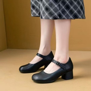 2025秋季新款极简风气质一字扣带玛丽珍鞋女复古圆头粗跟浅口单鞋