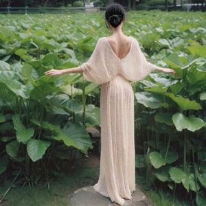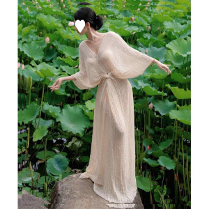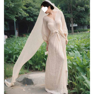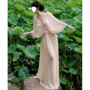 新中式复古简约清冷禅意风礼服裙高级感小众度假风V领长款连衣裙