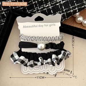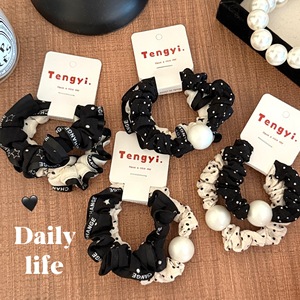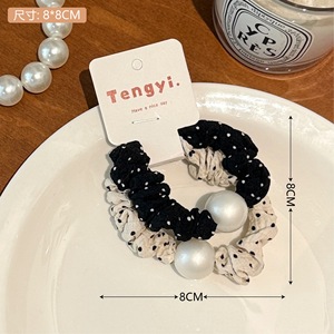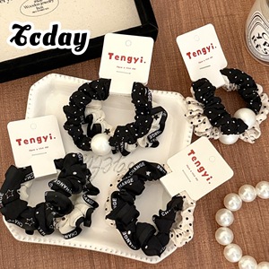 新款法式小香风黑色系波点珍珠小肠发圈少女高级感扎马尾头绳发饰