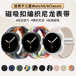 适用三星watch8手表表带Galaxy 8 Classic磁吸扣编织尼龙回环表带