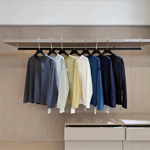 031998 秋季新品男女情侣上衣 简约基础款小标印花圆领长袖T恤