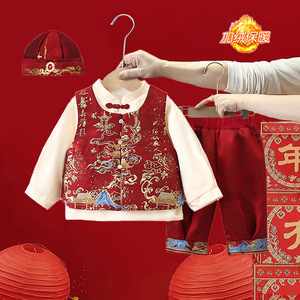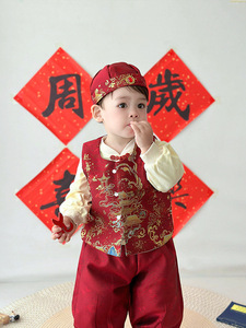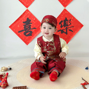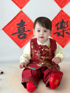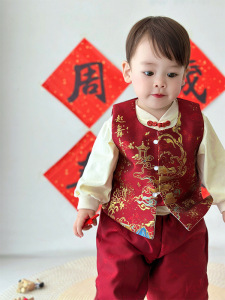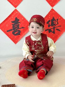 汉服男童中式套装儿童新款喜庆婴儿中国唐装周岁抓周宝宝礼服生日