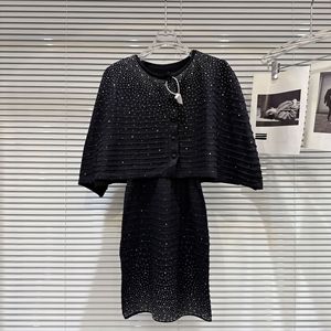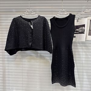2025秋季新款法式名媛满天星烫钻披肩+针织背心裙套装女