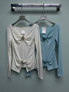 南油高定2025早秋新款复古小香风钉珠褶皱v领长袖上衣纯欲显瘦