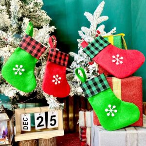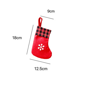 跨境新款圣诞装饰品红黑格子圣诞袜挂饰礼物礼品绿黑格糖果袋挂件