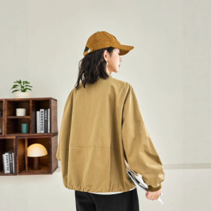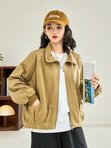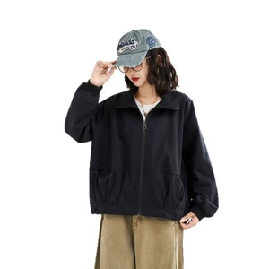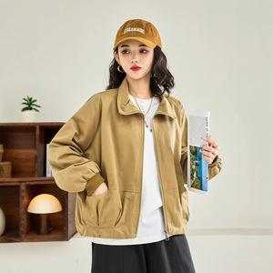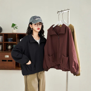韩版小个子外套女 2025秋新款翻领纯色百搭短款拉链开衫上衣 090