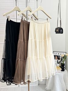 A字拼接蓬蓬蛋糕裙法式温柔超轻盈感珠光柔纱裙气质百搭中长半裙