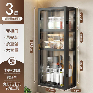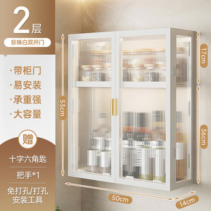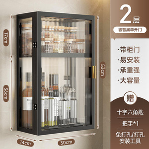 厨房墙壁置物柜免打孔壁挂式带门防尘调味品调料置物架墙上储物柜