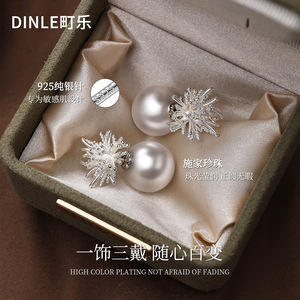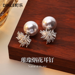 925银针烟花珍珠耳钉女独特绝美2025耳环小众设计高级感轻奢百搭