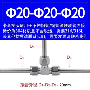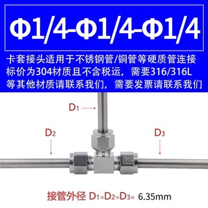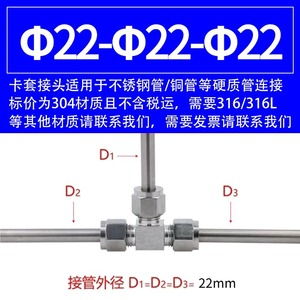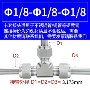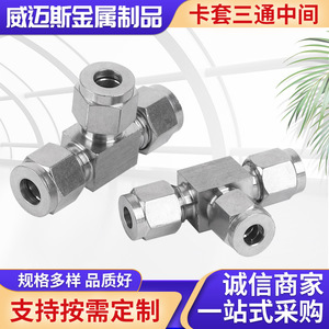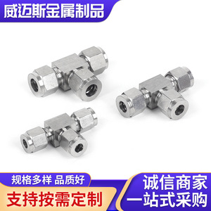 304不锈钢卡套接头卡套变径三通大小头异径三通T型卡套转接头等径