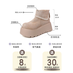 花边简约短靴厚底内增高雪地靴女秋冬复古加绒加厚保暖短筒大棉鞋