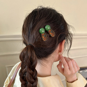 复古圆珠豆豆发夹韩国侧边刘海夹子头饰高级感可爱鸭嘴夹发饰