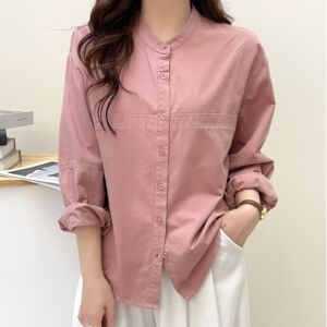 2025新款秋季新品小众感纯色长袖衬衫遮肉显瘦洋气减闲百搭