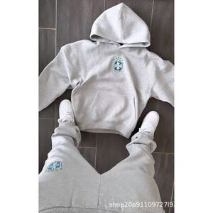 亚马逊秋冬新款时尚印花套头长袖连帽卫衣套装男跨境休闲百搭外套
