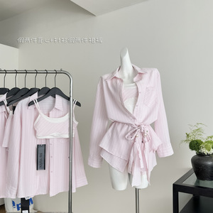 2025秋季新款衬衫假两件背心+衬衫假两件裙裤+编织绳条纹衬衫