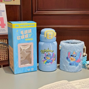 儿童保温杯可爱高颜值毛绒杯套水杯新款便携学生不锈钢吸管杯子