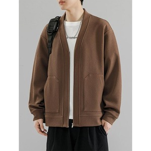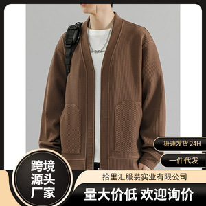 开衫男秋冬季潮牌宽松无领v领针织衫外套休闲百搭夹克秋装上衣服