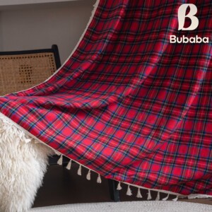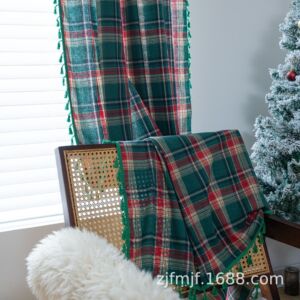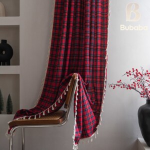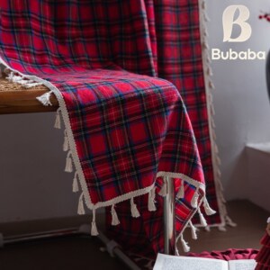 布爸爸跨境美式流苏窗帘客厅卧室阳台复古红格成品帘工厂成品批发