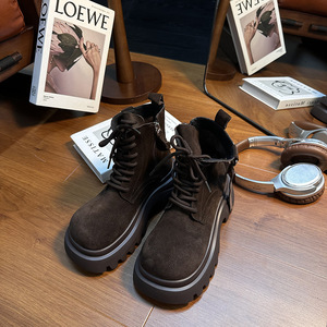 大头厚底马丁靴女2025秋季新款英伦风小个子增高短靴复古机车靴子