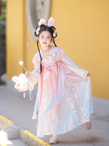 汉服女童小嫦娥国风春秋新款超仙中秋襦裙唐装儿童女孩古装连衣裙