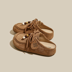 一脚蹬袋鼠鞋半拖女款2025年新款早秋小众外穿休闲时尚百搭包头拖