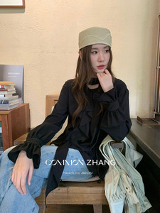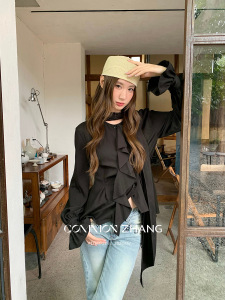 CZ ZHANG秋原创喇叭袖不规则花边衬衫女名媛百搭长袖休闲衫B33620