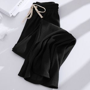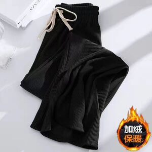 胖mm200斤抽绳阔腿裤女学生新款高腰垂感ins宽松直筒休闲大码裤子