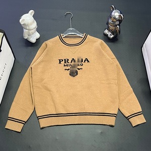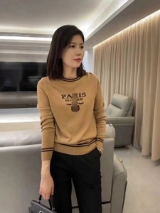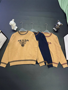 P家三色早秋新款高版本撞色字母提花羊毛圆领长袖针织毛衣女上衣