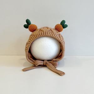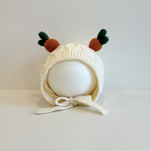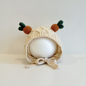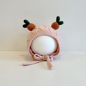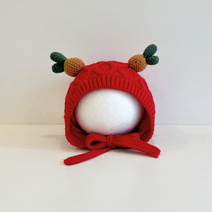 双萝卜系绳婴儿帽子秋冬保暖毛线针织男女宝宝护耳帽可爱卡通超萌