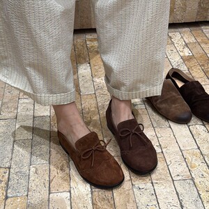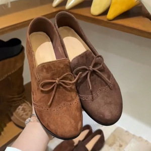 2025新款韩真皮圆头平底乐福鞋女复古牛皮蝴蝶结小皮鞋布洛克单鞋