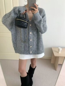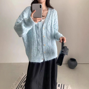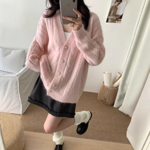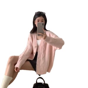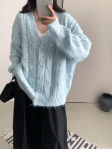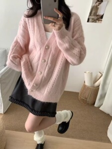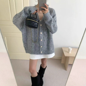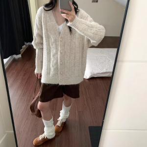 早秋新款设计感V领毛衣外套女穿搭宽松慵懒风软糯时尚开衫外套女