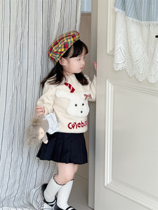 女童毛衣2025年新款卡通小狗针织圆领长袖女宝宝可爱毛衣一件代发