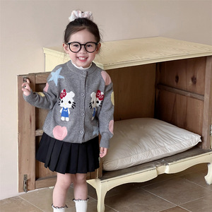 2025年秋冬新款儿童毛衣开衫针织圆领提花卡通女童毛衣可爱上衣