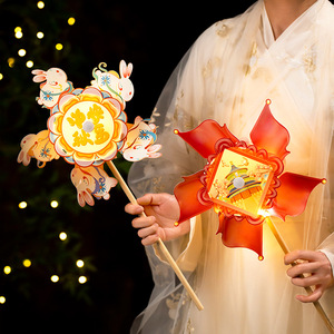 中秋节灯笼儿童手提花灯diy材料包360度旋转风车发光灯笼摆摊灯笼