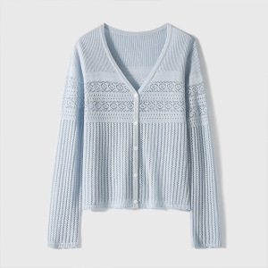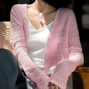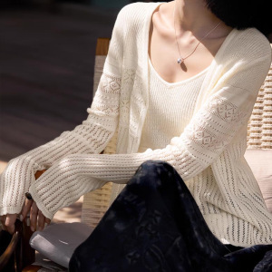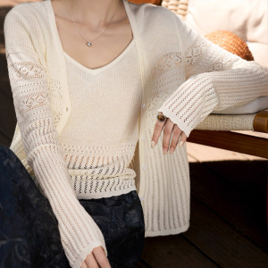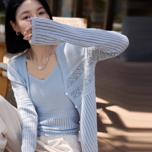 莱塞尔长袖夏秋季V领针织衫宽松型洋气防晒上衣外套薄款