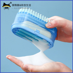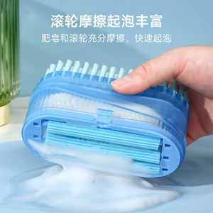 二合一肥皂起泡盒洗衣刷带滚轮免手搓鞋刷子多功能香皂沥水收纳盒