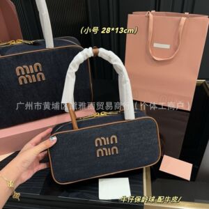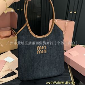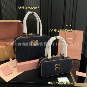 复古时尚大容量牛仔布真皮手提公文包2025新款通勤休闲百搭单肩包