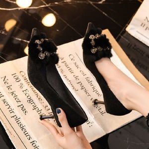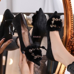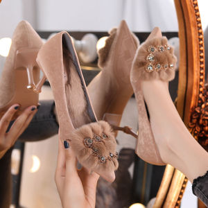 单鞋女中跟2025新款年羊羔毛高跟鞋设计感小众细跟网红毛毛鞋外穿