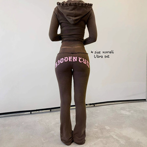欧美女装撞色腰头拼接微喇卫衣跨境批发修身辣妹裤休闲长裤套装