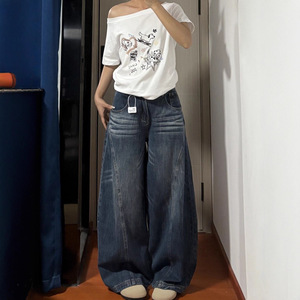 美式复古弯刀牛仔裤女秋季设计感宽松直筒阔腿梧桐拖地镰刀长裤子