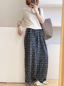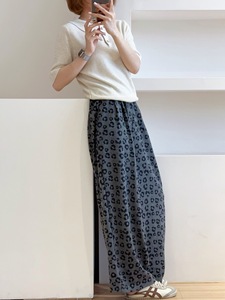 NOATAON ins杂志风甜美灰色豹纹|秋冬中腰直筒阔腿休闲长裤C153
