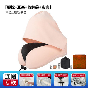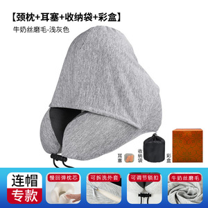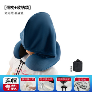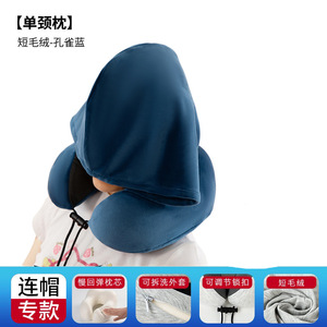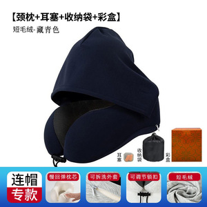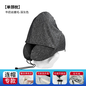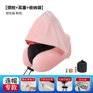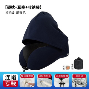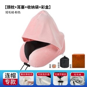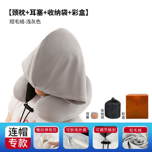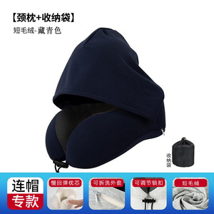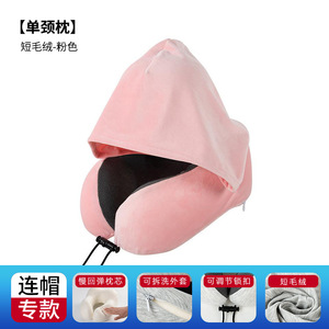 跨境新款带帽u型枕记忆棉户外旅行枕可拆洗连帽便携飞机颈枕批发