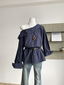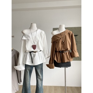 【Autumn New Arrival】尽情美丽尽情装扮自己#斜肩纯色收腰衬衫