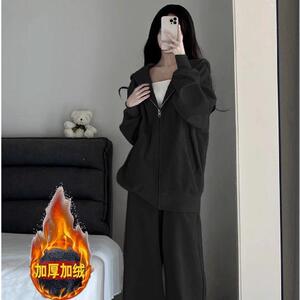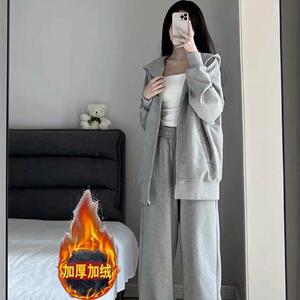 运动套装学生休闲韩版秋冬显瘦新款连帽两件套宽松跑步慵懒外套