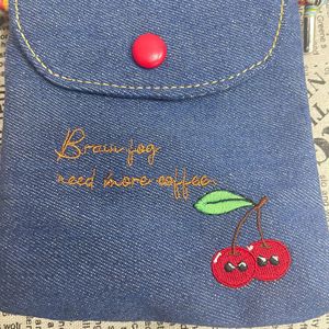 新款高颜值深蓝色牛仔布手机包夏季多巴胺串珠带刺绣单肩斜挎小包