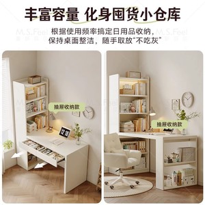 转角书桌书架书柜一体桌子学生家用写字学习桌卧室实木电脑办公桌