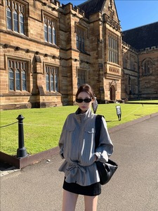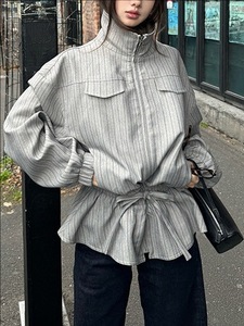 米兰往事'翻领条纹收腰抽绳外套拉链夹克早秋